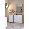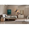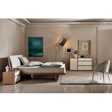 Η κρεβατοκάμαρα Kurly διαθέτει ένα καμπυλωτό κεφαλάρι με δύο ενιαία μαξιλάρια. Διατίθεται σε ξύλο καρυδιάς, δρυς ή λάκα ανάλογα με την επιλογή σας. Το σετ περιλαμβάνει κρεβάτι, 2 κομοδίνα, συρταριέρα και καθρέφτη.